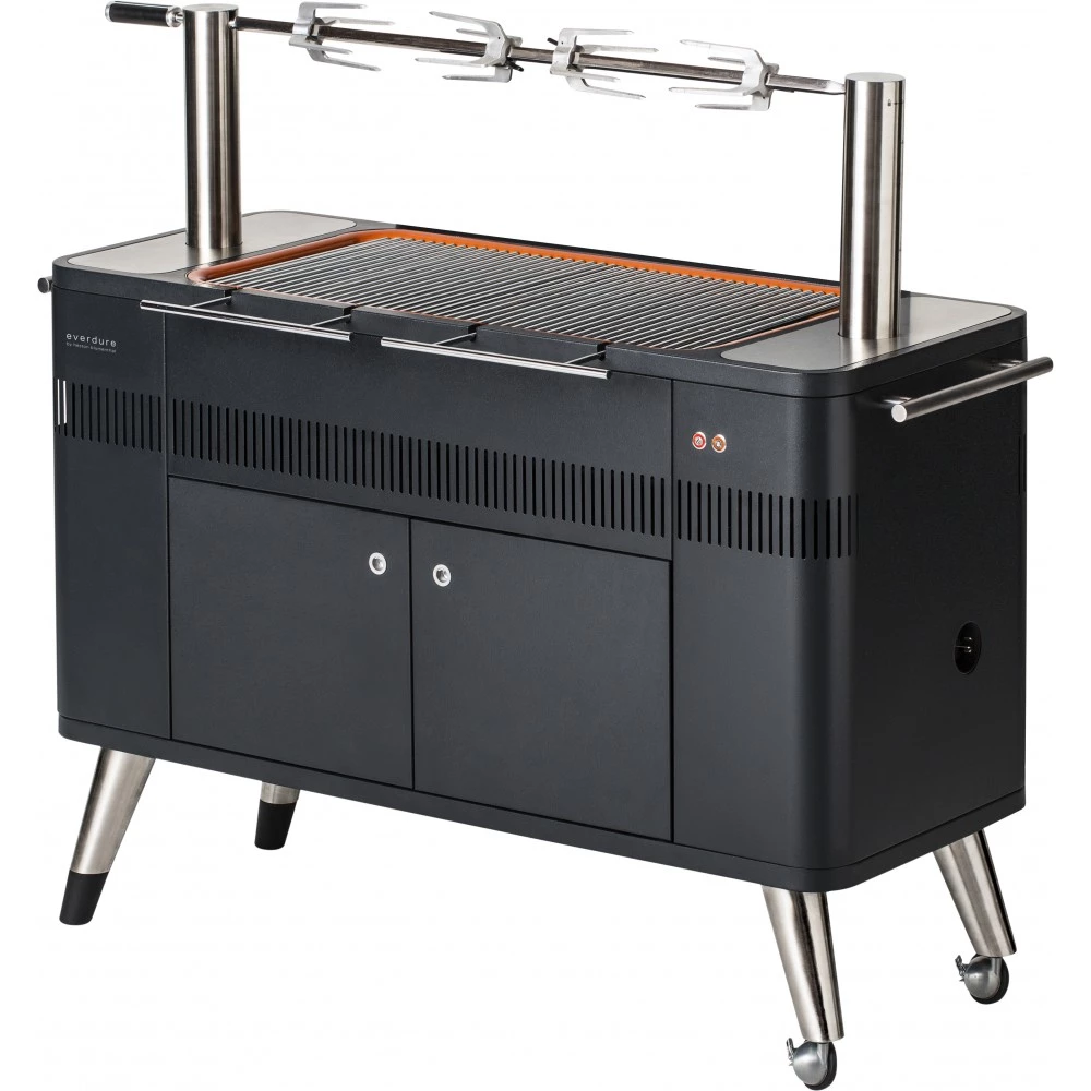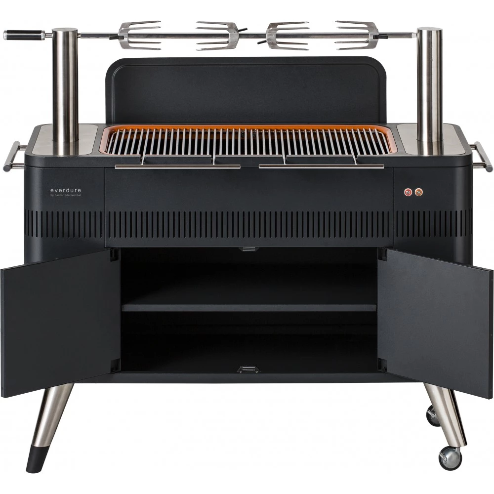 HUB kulgrill fra Everdure by Heston Blumenthal sørger med funktionen Fast Flame System, en knap til elektronisk tænding, for at dine kul er klar på 10 min.