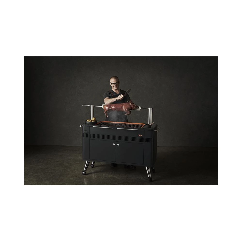 HUB grillen kombinere funktion og form med inspiration fra det minimalistiske danske design. Det integrerede rotisseri og den udtrækkelige ledning er et par eksempler på de lærke designdetaljer.
