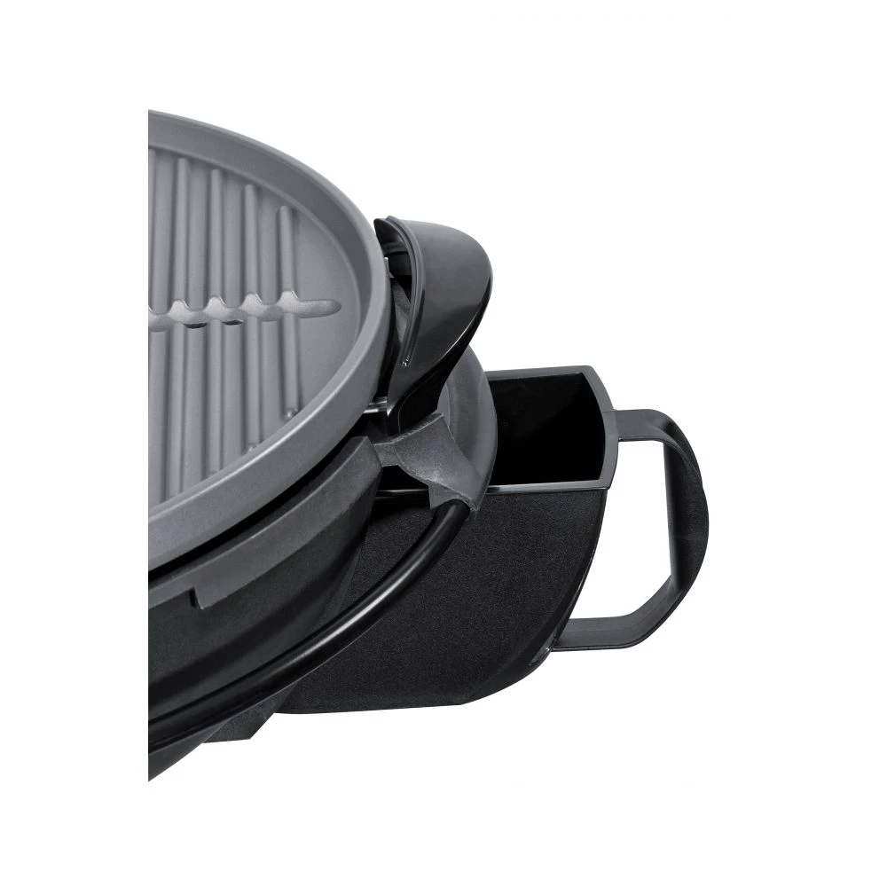 Steba VG 400 har indbygget drypbakke med niveauindikator / afmærkning samt keramisk belægning på både den stor grillplade og udvendigt på grillens låg.